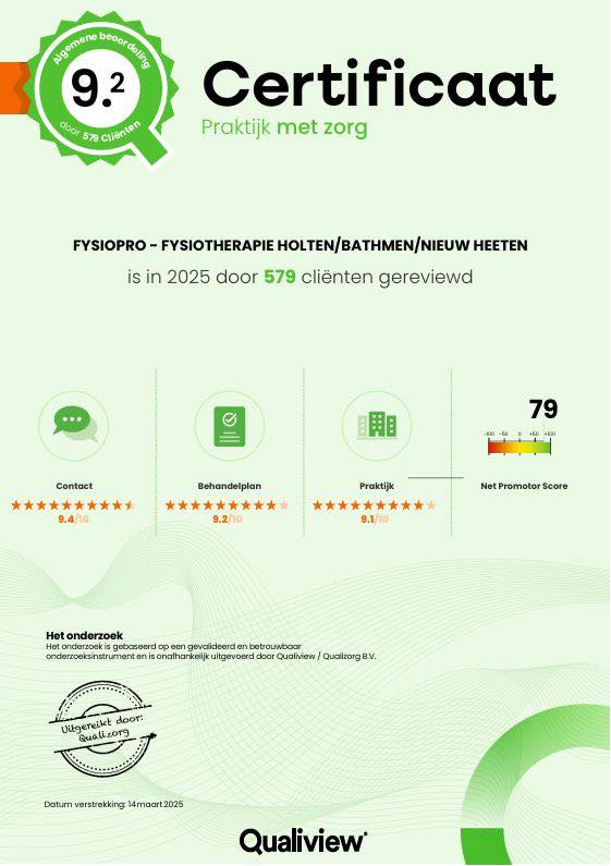 Trots op alle collega's van FysioPro! Het afgelopen jaar hebben 579 cliënten onze enquête ingevuld, wat heeft geleid tot dit mooie resultaat: Een 9.2! #fysiopro #qualiview #holten #bathmen #nieuwheeten #enquete #trots